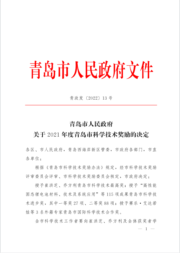 近日,青岛市人民政府发布了《关于青岛市科学技术奖励的决定》,公布了2021年度青岛市科学技术奖励名单。公司3044永利刘红飞教授参与的《海洋环境下碱激发胶材低碳混凝土制备、服役性能与应用关键技术》项目喜获青岛市科学技术进步奖一等奖。