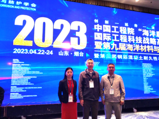 公司刘红飞教授、黄殿武副教授和薛力梨高级实验师等一行3人参加会议。刘红飞教授受邀在会议上作“海洋环境下生态混凝土鱼礁的性能及要求”的特邀报告,并与相关领域专家进行热烈交流。团队参会人员就海洋耐腐蚀材料的研究方向、技术问题等与同领域专家进行交流,同时参观了十几家领域内知名企业展出的先进产品、技术和测试仪器等。