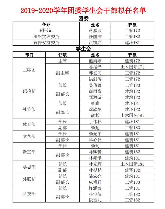 经竞职答辩,结合公司团委考核,现将嘉兴公司2019-2020学年团委员工会拟任干部名单公布如下: