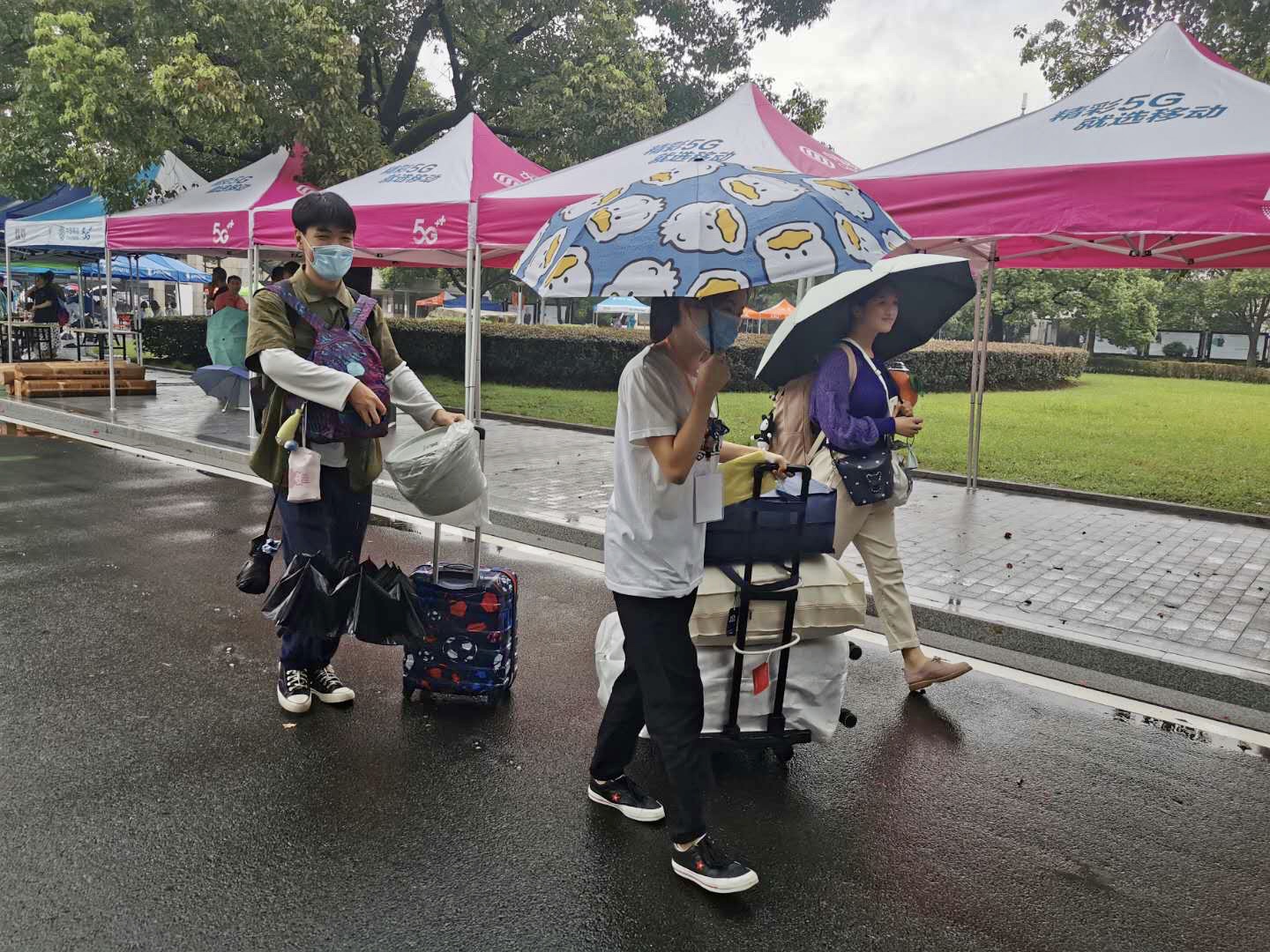 9月17日-18日,佩戴志愿者证的迎新志愿者们积极投入各自服务岗位。新生到达后,在校门外热情等待的志愿者们接过新生及家长手中的行李,有条不紊地引导新生按照防疫要求进入校园,并将新生带至公司迎新站点完成报到。校园内中心广场的志愿者们面带微笑,积极为新生解答疑惑,并向其发放迎新手册、帆布袋、矿泉水等迎新礼。