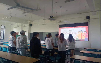 最后,连宏亮老师代表院团委向新团员致贺,并提出殷切希望。他表示,入团仪式不仅仅是成为一名光荣团员的标志,更意味着我们从此将全面享有团员的义务和权利,成为党的助手和后备军,身上也将肩负着更重要的历史责任。习近平总书记指出,中国共产党是先锋队,共青团是突击队,少先队是预备队,入党、入团、入队是青年追求政治进步的“人生三部曲”,今天我们入团了,下一步我们要继续不懈奋斗,努力成为一名光荣的共产党员。(连宏亮供稿,杨智慧审稿)