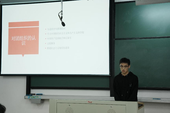 入团候选人以PPT宣讲形式介绍了自己的基本信息,自身入团动机、学习情况、志愿经历等,详细阐述了自身对团组织的认识和向往,展现出同学们激昂向上的精神风貌以及对于入团的决心和毅力。郭起珠老师从聚焦政治信念、思想认识以及未来规划对每位同学进行了提问,同学们认真深刻地进行了回答。