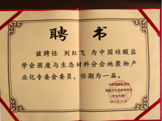 2017年11月23日,“中国硅酸盐学会固废与生态材料分会地聚合物产业化专委会成立会议暨第一届地聚物学术与技术高层国际论坛”在大连理工大学成功举行。会议由地聚物产业化专业委员会主任委员翟冠杰教授主持,中国硅酸盐学会固废与生态材料分会副理事长李辉教授受邀参会指导。出席本次会议的有中国硅酸盐学会固废与生态材料分会领导及30多位中国硅酸盐学会固废与生态材料分会地聚合物产业化专委会委员。嘉兴公司刘红飞教授当选首届专业委员会委员。地聚物产业化专业委员会主任委员翟冠杰教授给第一届委员颁发了聘书。成立会议结束后,举行了“第一届地聚物学术与技术高层国际论坛”,部分特邀专家和委员进行了热烈学术和技术交流。