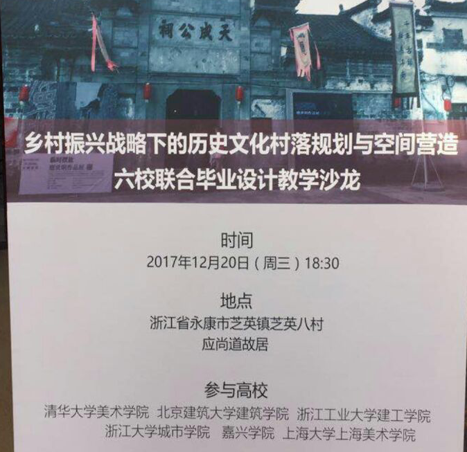 2017年12月20-23日为期4天的“乡村振兴战略下的历史文化村落规划与空间营造高校联合毕业设计”竞赛暨教学沙龙系列活动在永康市芝英镇芝英一村隆重举行。