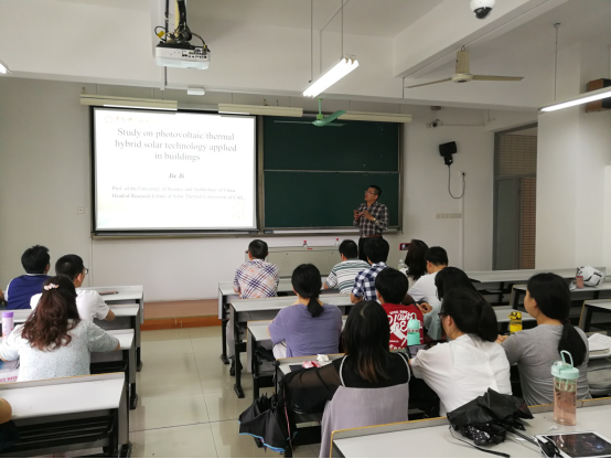 2018年6月6日,中国科学技术大学季杰教授应邀来公司讲学,为建环专业师生做了题为 “太阳能光伏-光热建筑一体化技术研究”的学术报告,3044永利经理马嵘老师主持报告会。