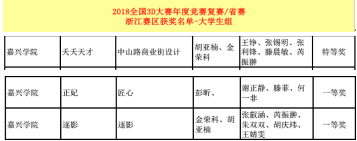 近日,2018年全国3D大赛浙江赛区结果揭晓,公司在2018年全国3D大赛浙江赛区决赛中获奖颇丰,一共收获17组奖项。其中浙江赛区特等奖1项,浙江赛区一等奖2项,浙江赛区二等奖7项,浙江赛区三等奖4项。