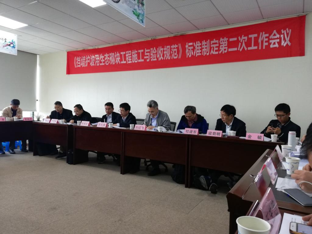 2019年4月27日,受中国工程建设标准化协会建筑与市政工程产品应用分会委托,嘉兴公司在浙江省嘉兴市组织召开了团体标准《挡墙护坡用生态砌块工程施工与验收规范》第二次工作会议,会议由浙江荣林环境股份有限公司承办,共有来自全国的高等公司、科研设计、生态砌块生产、施工、检验机构等部门的22个单位40名代表参加了会议。