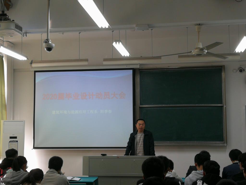 2019年10月30日,建环专业在教二A543教室召开2020届毕业设计动员大会,建环系主任阳季春老师主持,建环专业毕业设计指导老师出席。