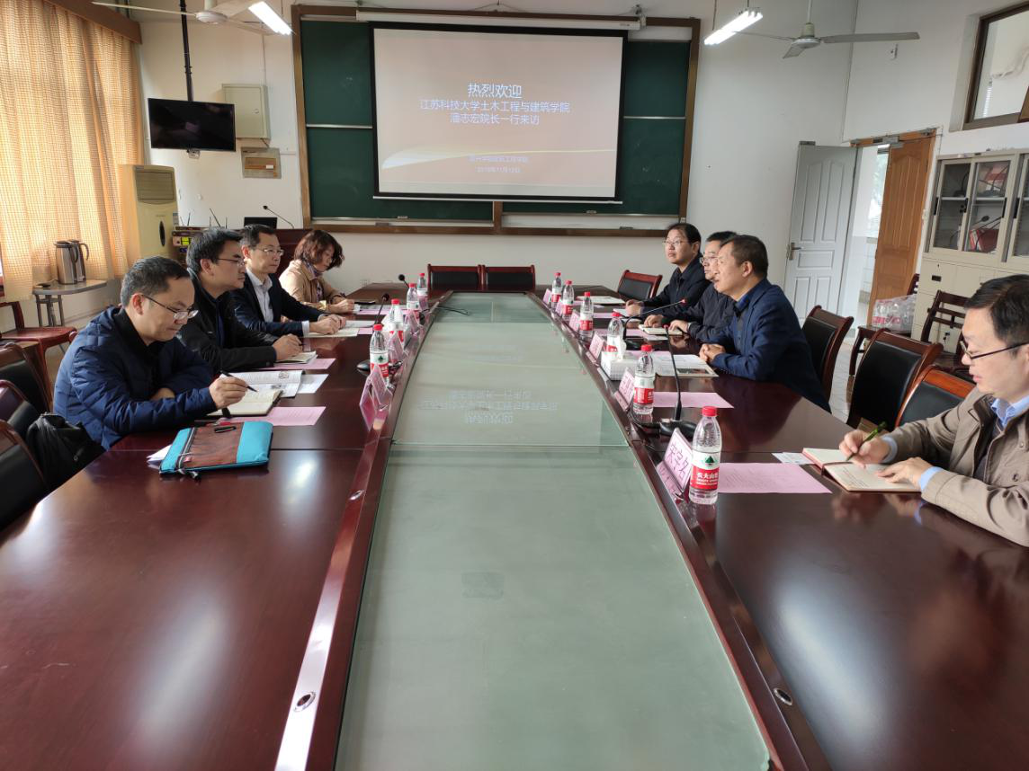 11月12日上午,江苏科技大学土木工程与建筑公司潘志宏经理一行4人来建工公司考察。建工公司经理马嵘、副经理孙德发和工程管理系、实验中心、院办负责人参加座谈会。