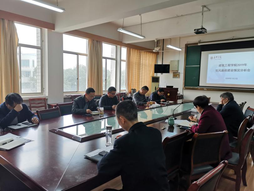 2020年1月7日上午,建工公司党委召开2019年党风廉政建设情况分析会。公司党委副书记严从荃到会指导。分公司党政领导班子、党委委员参加会议。分析会由公司党委书记费锦红主持。