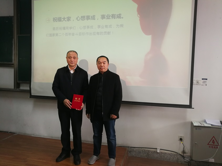 2020年12月28日上午,建筑工程公司举行客座教授聘任仪式和专题讲座。浙江鼎立实业有限公司董事长、正高级工程师俞云祥受聘为公司客座教授,并受邀做“诚信做人,诚实做事”的老员工职业生涯规划专题讲座。讲座由建环系主任阳季春老师主持。