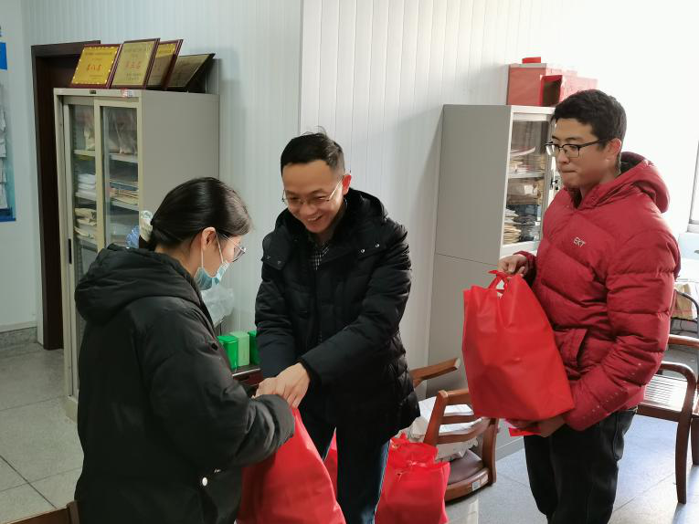 2021年1月29日,建工公司组织开展送温暖慰问留校过年员工的活动。党委副书记王辉为同学们送去了冬日的温暖和公司、公司的双重关怀。