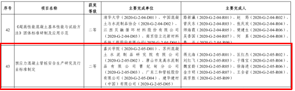 日前,中国建筑材料联合会、中国硅酸盐学会正式批准公告了2020年度建筑材料科学技术奖获奖项目,公司蒋元海教授课题组完成的“预应力混凝土管桩安全生产研究及行业标准制定”科技成果荣获全国建材行业科技进步二等奖。