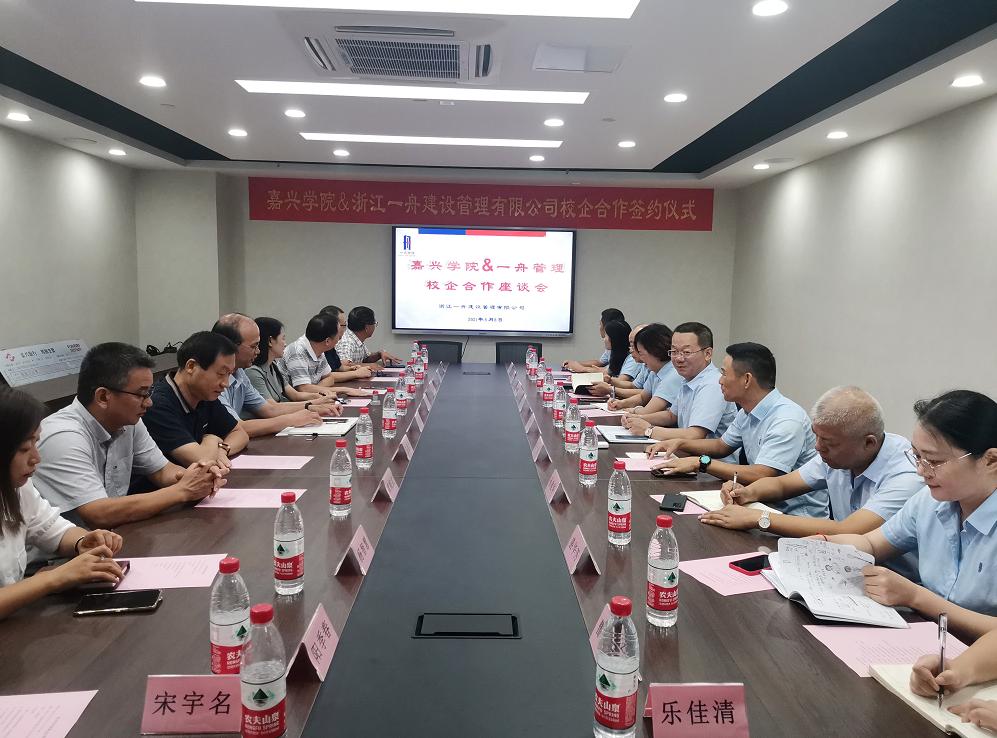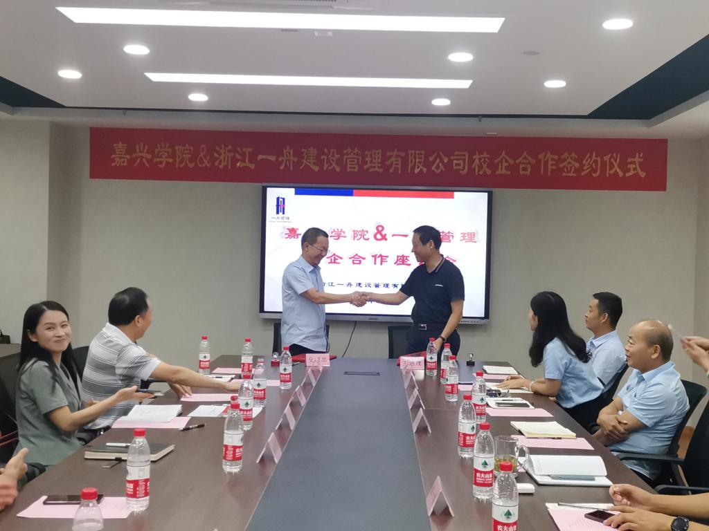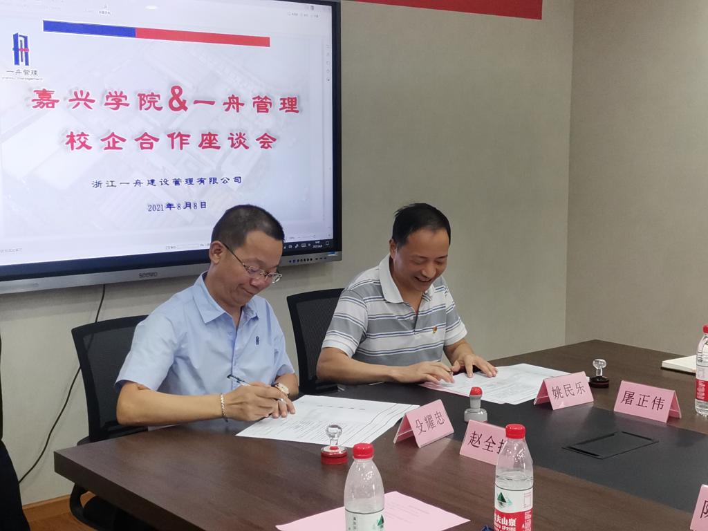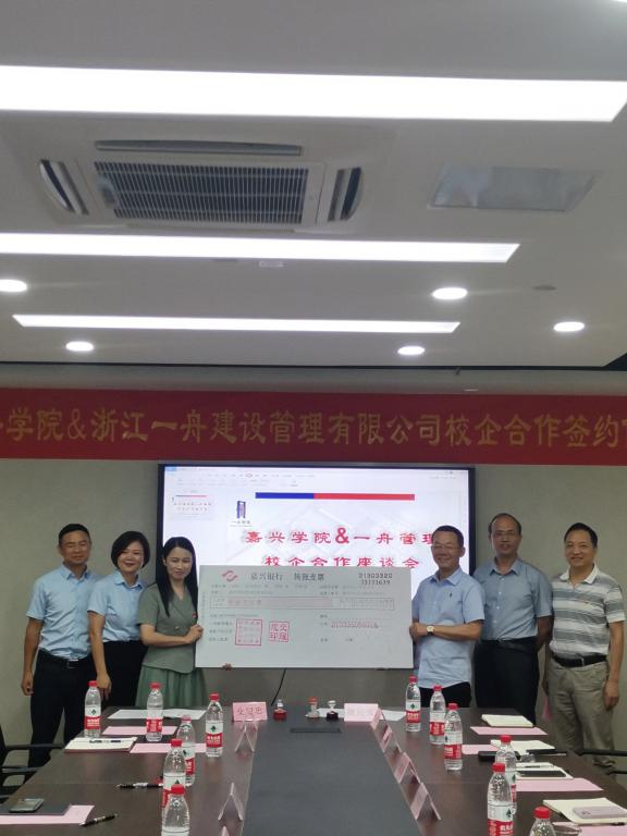 会上,殳耀忠总经理和王恩茂经理代表双方签订了校企合作协议;杨培强副董事长向浙江一舟建设管理有限公司颁授产学研基地牌匾;殳耀忠总经理和姚民乐书记代表双方签订了捐赠协议,浙江一舟建设管理有限公司向嘉兴公司教育发展基金会捐赠叁拾万元用于公司的发展建设和人才培养。