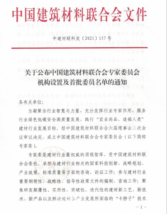 日前,中国建筑材料联合会六届理事会二次会议审议决定,成立中国建筑材料联合会专家委员会。公司3044永利蒋元海教授被聘请为专家委员会标准规范学部首批委员。