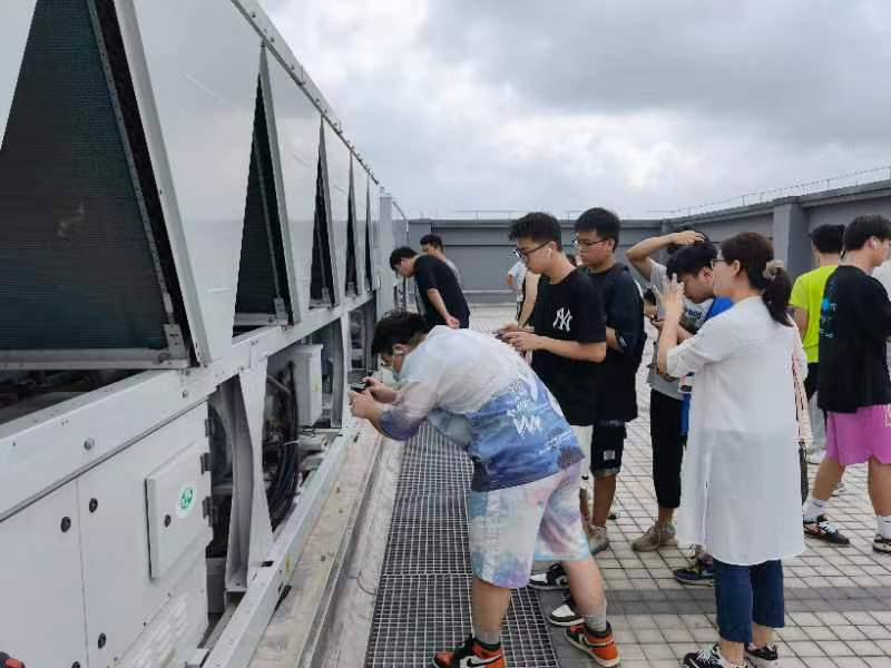 实习开始前3位老师进行了认识实习动员,对专业实习工作进行了详细安排,在动员会上特别强调了纪律和安全问题。在专业教师的带领下,同学们参观了戴梦得大酒店冷热源机房,嘉兴公司图书馆空调、防排烟系统及冷热源设备,嘉兴体育馆空调、防排烟系统及冷热源和水处理系统,最后还现场参观3044永利工程实验中心小型空调系统,对空调系统的运行过程和调控原理有了初步认识。同学们通过实习的亲身体验与学习,不断拓展视野、丰富知识,加深了专业认识。