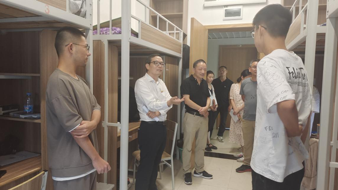 为深入了解2022级新生来校后情况,8月22日下午,副董事长周宏伟到员工公寓走访看望了公司2022级新生。公司党委书记姚民乐、副经理黄殿武、副书记杨智慧及全体辅导员陪同走访。
