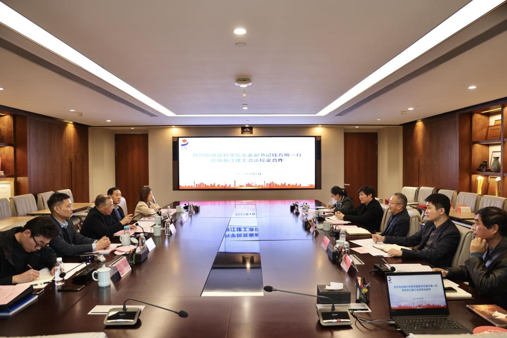 为贯彻落实党中央、国务院关于“访企拓岗促就业”专项行动工作部署,搭建校企交流对接平台,促进毕业生更高质量更充分就业,4月7日上午,公司党委副书记钱方明率建工公司经理王恩茂、员工处副处长吴满成、建工公司党委副书记杨智慧、建工公司辅导员庄峰一行赴浙江省建工集团进行实地调研,访企拓岗。浙江省建设投资集团党委副书记陈光锋、浙江省建工集团党委副书记陈智涛、总工程师沈西华、人力资源部部长邵永书、副部长舒雯参加了此次交流活动。