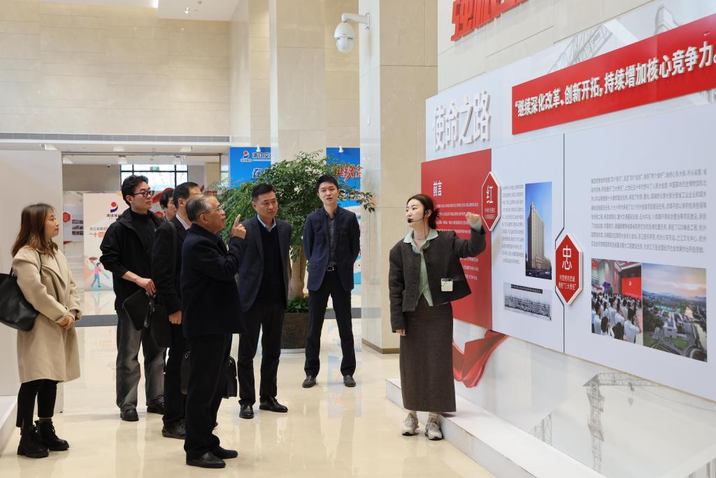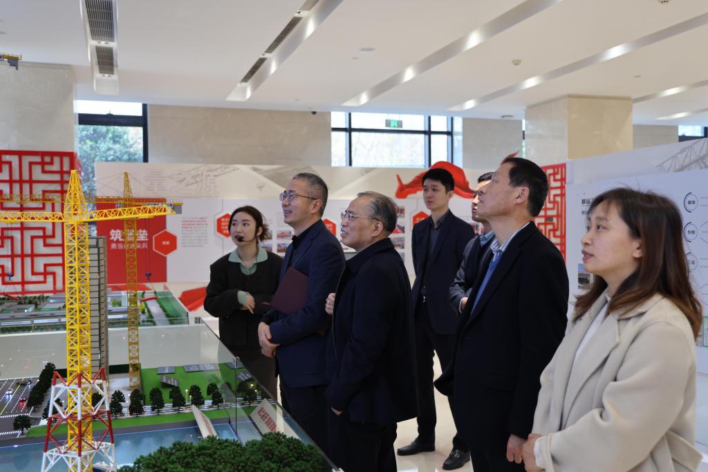 钱方明一行参观了浙江省建工集团展厅,对该公司的企业发展历程、集团组织架构、企业文化、集团荣誉、重点工程、人才创新、党建活动等方面进行了详细了解。