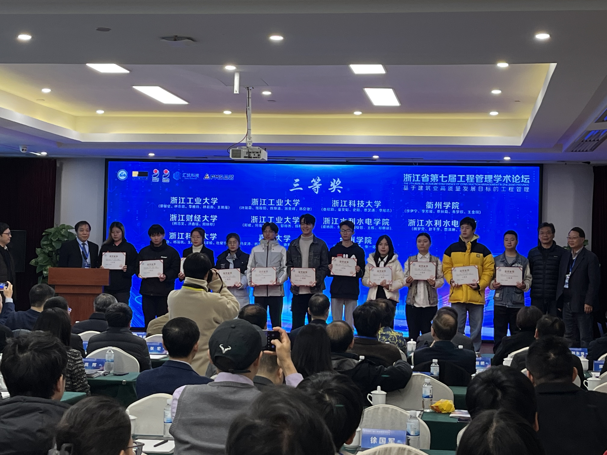 同时,本次论坛还举行了第六届浙江省老员工智能建造与管理创新竞赛颁奖典礼。工程管理系主任宋宇名老师带领的团队获得了三等奖的好成绩。