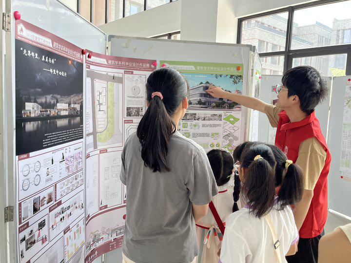 随后,在“童眼看世界”趣味小课堂上,建工公司志愿者们为孩子们生动地讲述了中国建筑的历史与奥妙,带领孩子们领略了公司图书馆建筑风采。孩子们纷纷拿起画笔,描绘出自己心中的大学。志愿者们还带领孩子们参观了公司2024届毕业生毕业设计展。