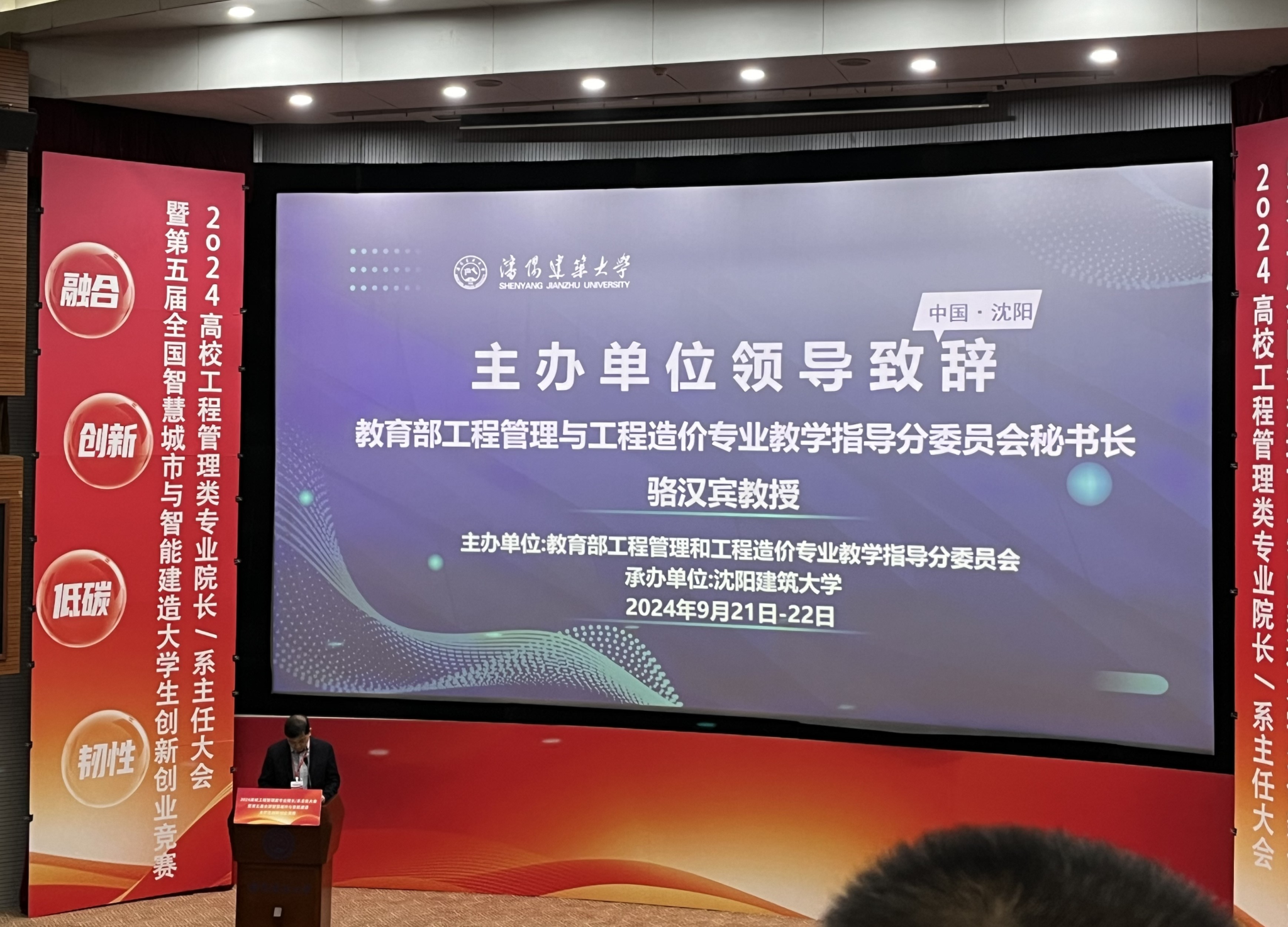 2024年9月21日至22日,工程管理系主任宋宇名、副主任何丹丹及庄天文、陈艾老师参加了在沈阳建筑大学举办的全国高校工程管理类专业经理(系主任)大会。本次会议由教育部工程管理和工程造价专业教学指导分委员会主办,沈阳建筑大学承办,围绕“融合、创新、低碳、韧性”的议题展开,旨在提升工程管理类专业教学水平与人才培养质量,推动教学创新,激发产教深度融合。教育部工程管理和工程造价专业教学指导分委员会秘书长骆汉斌教授致辞,住建部高等教育工程管理专业评估委员会副主任、重庆大学副董事长刘贵文教授做了“产业形势与工程管理类专业发展方向的思考”的报告,来自同济大学、上海财经大学、大连理工大学、武汉理工大学等高校的教学指导委员会委员也分别做了报告。