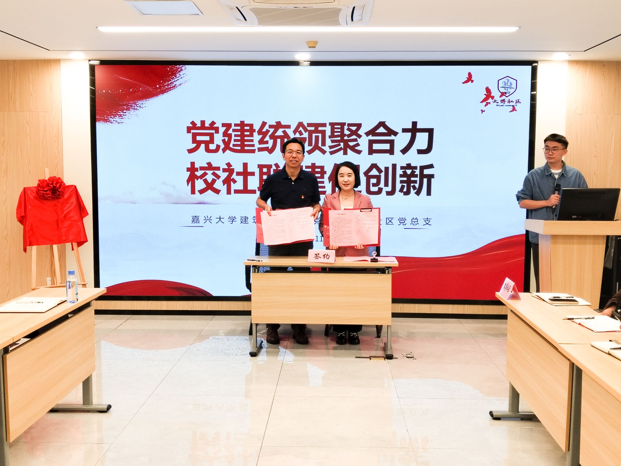 签约仪式在文博社区党群服务中心隆重举行。公司党委书记童勇军与文博社区党总支书记徐红霞共同签署了党建结对共建协议书。