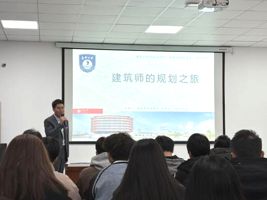 朱琼浩做题为《建筑学的规划之旅》的讲座,从自身求学经历出发,生动讲述了一名建筑学本科生成长为规划管理者的心路历程。结合自身丰富的设计实践,分享了多个经典案例,并推荐了多本专业书籍,为同学们提供了宝贵的学习资源。讲座中,他还深入浅出地讲解了建筑设计理念和城市规划中的核心概念,并结合自身科研经验,为同学们未来的学术发展提供了建议。