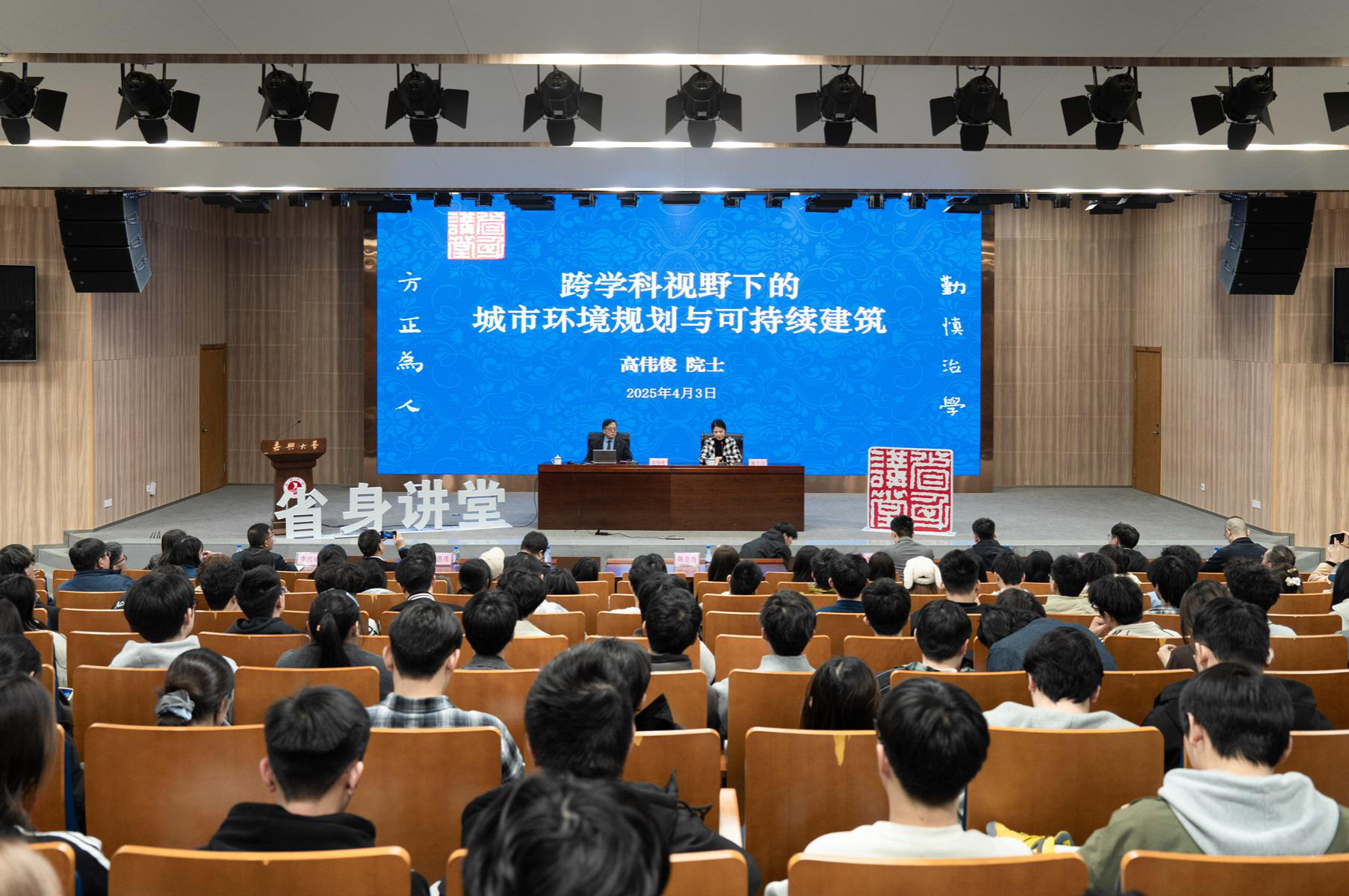 在互动环节,现场师生踊跃提问。高伟俊院士对师生提出的建筑学专业在未来发展中的重要作用、人工智能高速发展背景下的网络安全、建筑专业人才培养体系和专业转型等问题进行了深入解答。