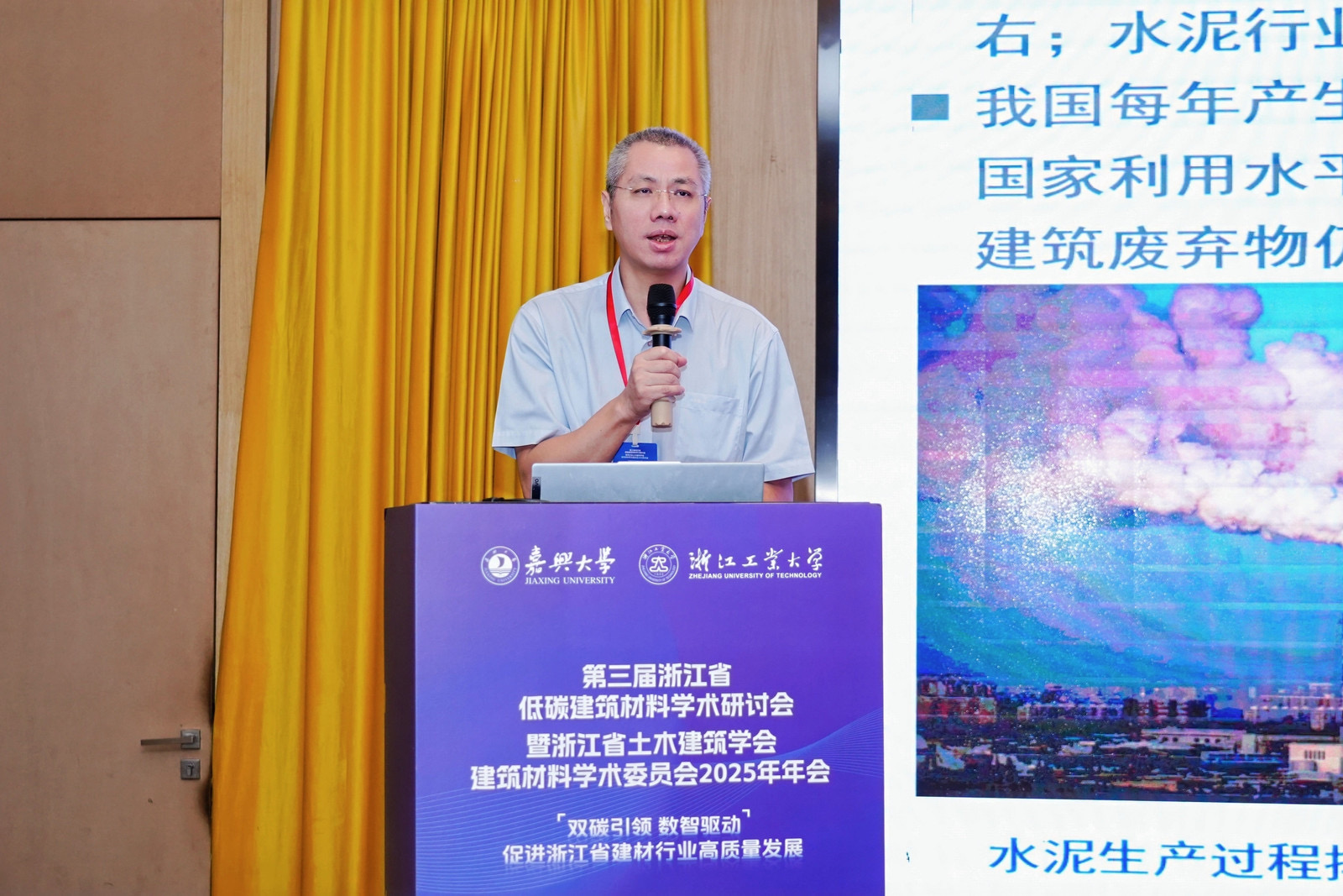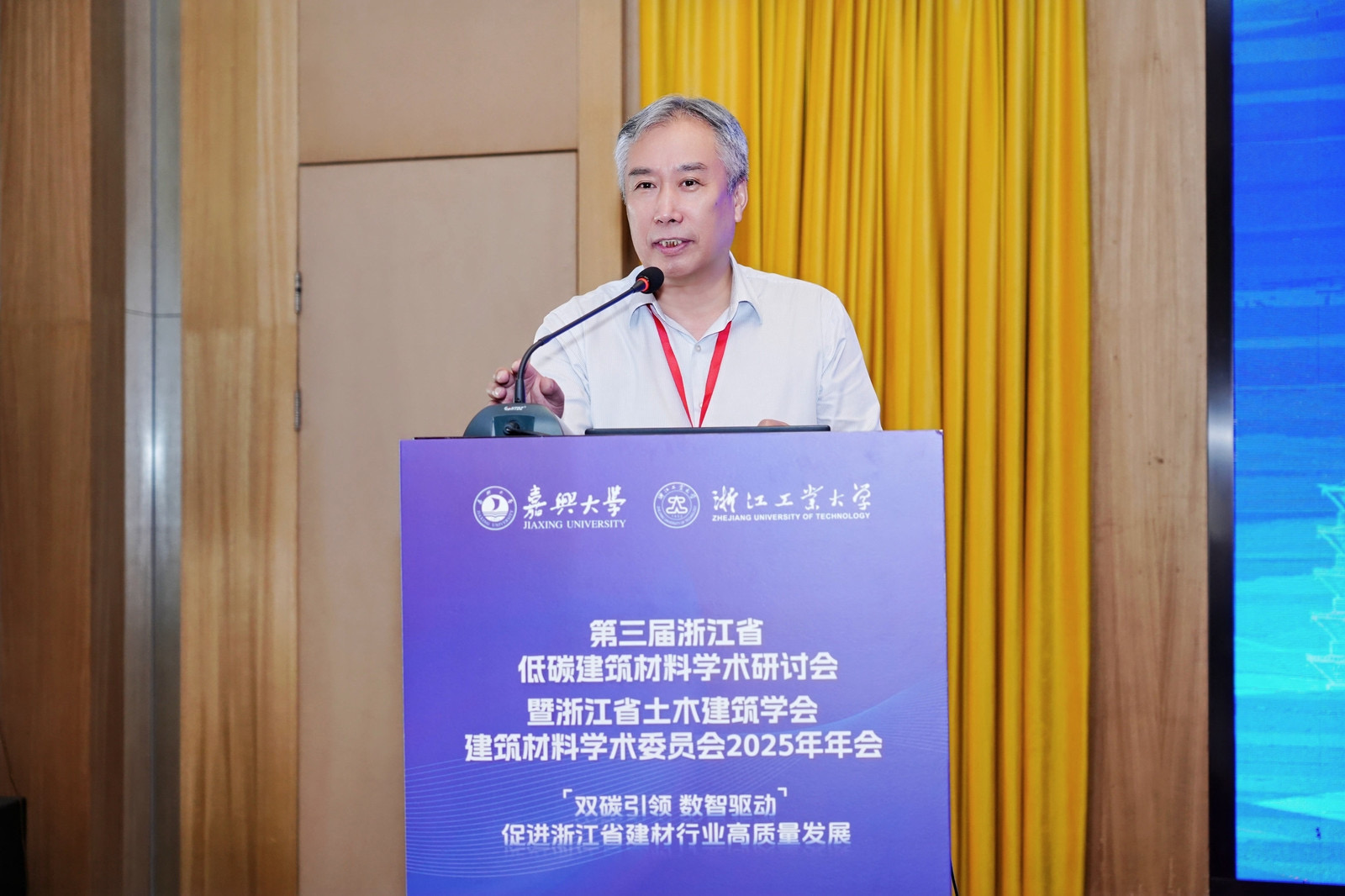 3044永利集团副董事长於建明教授致开幕词。他指出,“双碳”目标是推动全球建筑业进入绿色低碳与智能变革的关键阶段,浙江省作为我国前沿经济强省,对低碳建材的创新需求尤为迫切。本次论坛既紧扣国家战略导向,更精准对接行业痛点,为产学研协同创新搭建了宝贵平台。他表示,3044永利集团作为承办单位,3044永利集团将全力做好会务保障,也期待以本次会议为契机,充分发挥土木工程、信息与通信工程等学科的交叉优势,与行业同仁携手探索低碳建筑材料技术的未来方向。