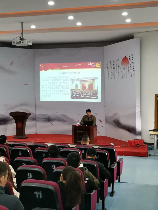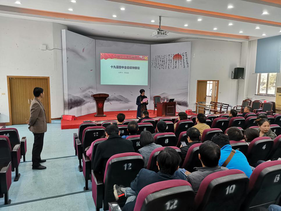 2019年11月21日下午,建工公司邀请马克思主义公司李庆喜博士来院作十九届四中全会精神宣讲。建工公司党政领导班子、全体教职工和员工党员参加会议。