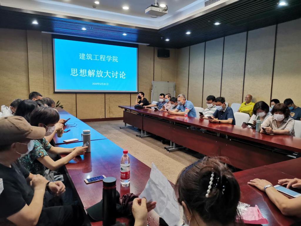 2020年6月20日下午,建工公司思想解放大讨论座谈会在环境优美的梅花洲酒店会议室举行,公司党政领导班子成员、各支部教师党员、教师代表参加会议。