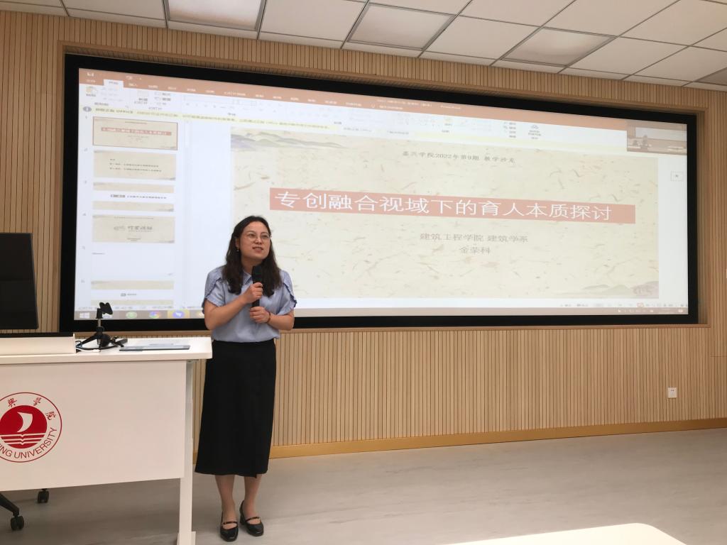 2022年9月29日下午14:00,由校教师发展中心主办、建筑工程公司教发分中心承办,创业公司、信息科学与工程公司教发分中心合作组织的2022年第九期教学沙龙顺利举行。沙龙主题为“工科专创融合的教学实践”,由公司黄殿武副经理主持,胡亚楠老师为主讲嘉宾、创业公司陈致远副经理和建筑学系金荣科副主任为分享嘉宾,来自10多个公司共100多名教师参加该活动。