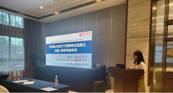 公司马金凤老师参加了此次会议并在“极端荷载”分会场作了题为“不同应力状态下型钢再生混凝土粘结滑移性能研究”的学术报告,分享了她在钢混凝土组合结构界面黏结滑移方面的研究成果。