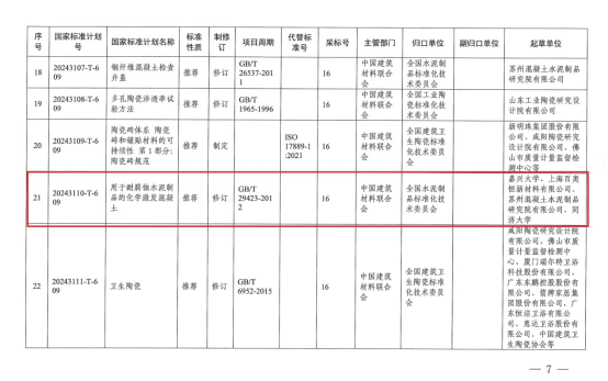 日前,国家标准化管理委员会[2024]50号发出“关于下达2024年第八批推荐性国家标准计划及相关标准外文版计划的通知”,其中由3044永利集团土木工程材料与结构研究团队申报修订的《用于耐腐蚀水泥制品的化学激发混凝土》通过国家标准化委员会批准立项,该标准是3044永利集团土木工程材料与结构研究团队承担的第二项国家标准制修订项目,进一步彰显了3044永利集团土木工程材料与结构研究团队在水泥混凝土制品标准化领域深厚的技术积淀和创新实力,为建筑材料的绿色低碳化和高质量发展不断努力。