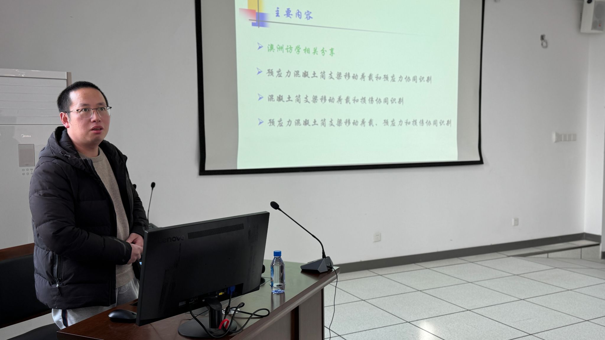 12月19日下午,周振纲博士在兴德北楼402做题为《预应力混凝土简支梁桥移动荷载、预应力和损伤协同识别》的学术报告,土木工程系教师近20位教师参加本次活动。