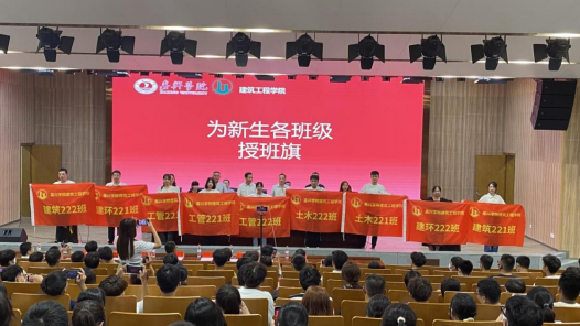 伴随着庄严的国歌声,开学典礼仪式正式拉开帷幕。工程管理222班鄂鹏举代表新生发言,他希望大家不虚度大学时光,珍惜大学时光。不负青春,不负韶华,勤奋学习、提升本领,报效祖国。建环202班刘昇学长希望学弟学妹们能够尽快进入学习生活状态,并思考“小目标”和“大方向”的问题,奋发向上,不负韶华。