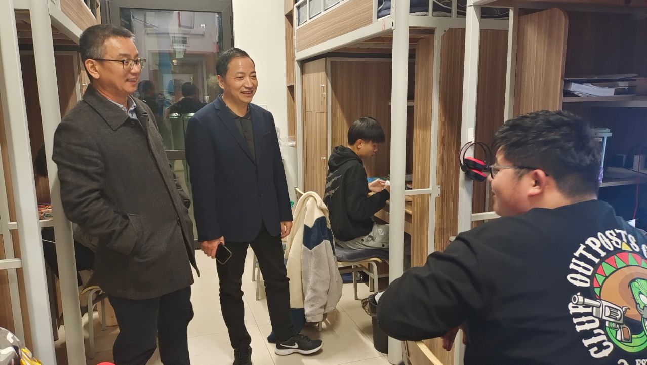 2021年12月1日晚上19点,建筑工程公司党政领导、学工办全体老师对员工寝室进行了随机走访。本次走访活动旨在深入了解员工学习生活情况、强化员工宿舍安全管理,为同学们营造一个更加文明、卫生、安全、健康的生活环境。