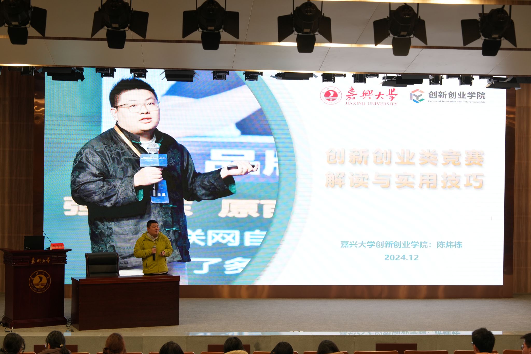 会议还邀请了创新创业公司陈炜栋老师为同学们讲解创新创业比赛相关知识。他从项目选题、团队组建、商业模式设计、路演技巧等方面进行了详细讲解。并通过生动的案例鼓励员工积极参与创新创业比赛,提升创新能力和团队协作精神。