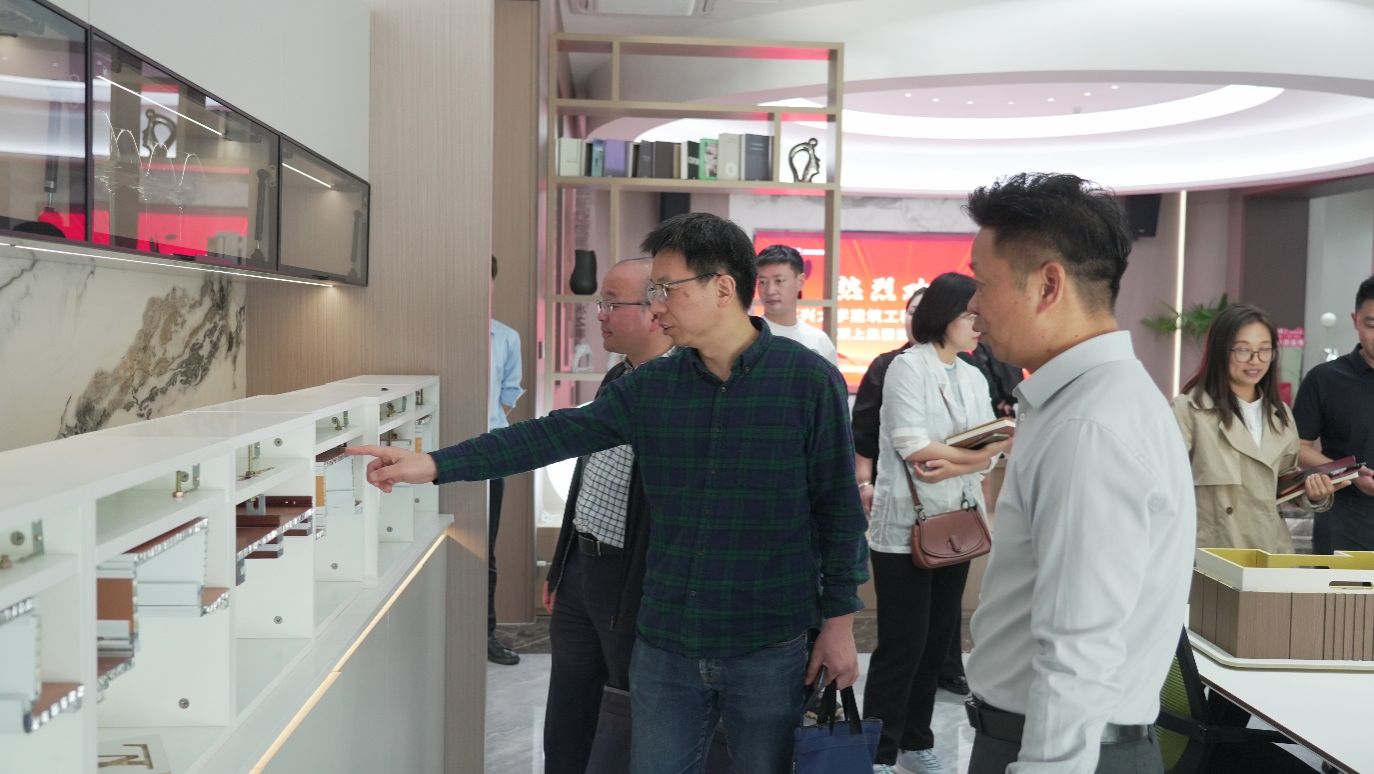 座谈会后,公司一行实地参观了顶上集团产品展厅。